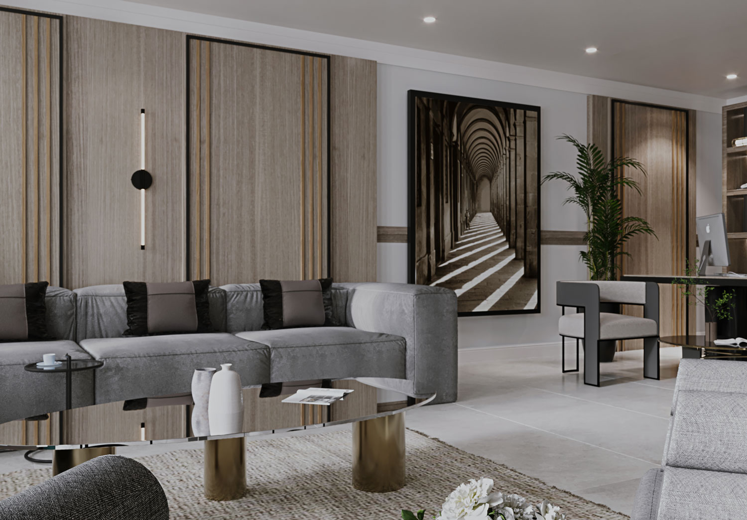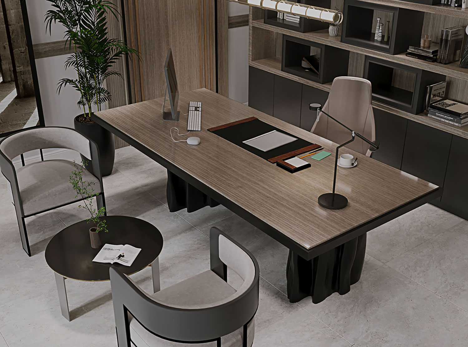 Modern formlarla güçlendirilmiş, tüm detayları titizlikle tasarlanmış ofis projemizde; iş hayatının sıkıcı rutininden uzaklaştıran, çalışana ilham veren bir ambiyans yaratmaya çalıştık. Beyaz ve gri tonlarının hakim olduğu ofis, renkleriyle mekanda genişlik ve özgürlük duygusunu hissettirirken, tablo ve diğer destekleyici unsurlarla modern ve elegan bir havaya kavuştu.