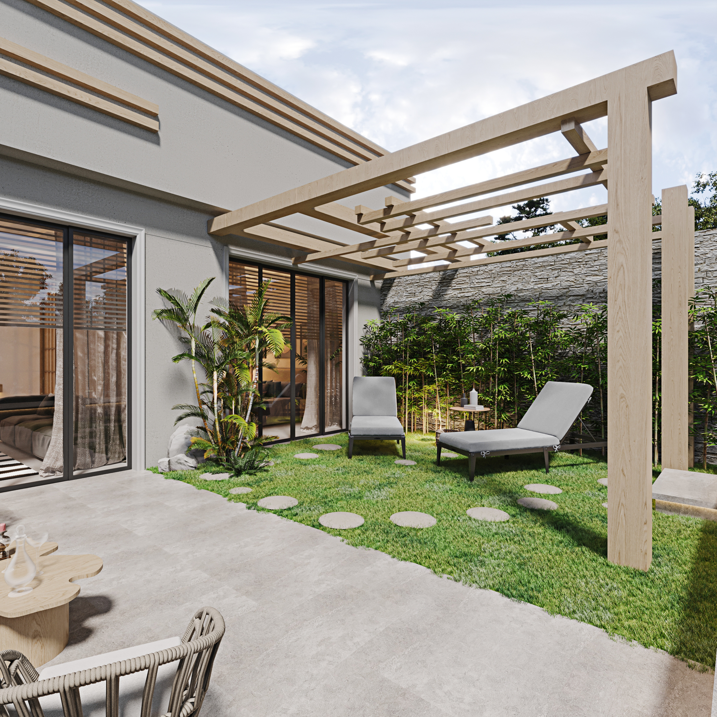 Doğal dokular ve modern mimarinin buluştuğu butik bir yaşam alanı.