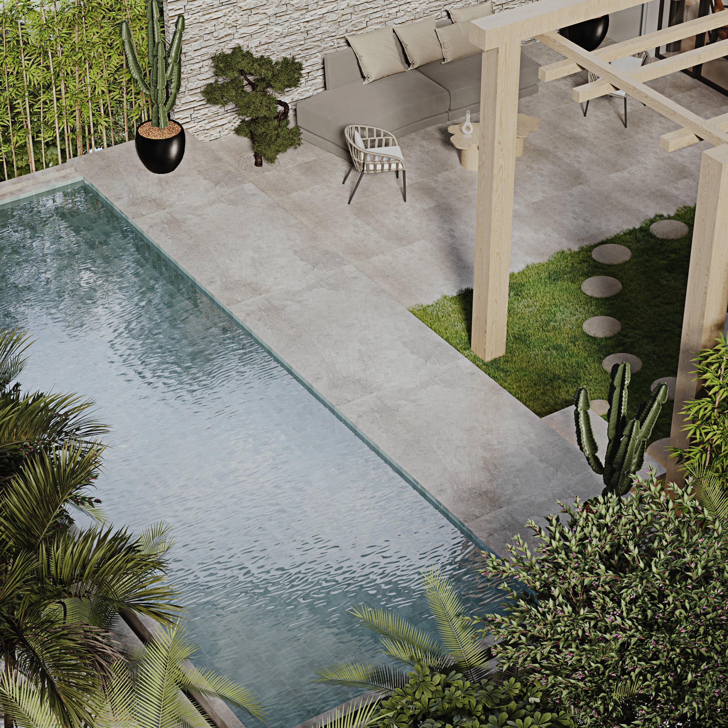 İç mekanın doğal bir uzantısı olan dış alanda; güneşlenmek için şezlong alanı, keyifli sohbetler için açık hava oturma grubu ve ferahlatıcı bir mini havuz yer alıyor.